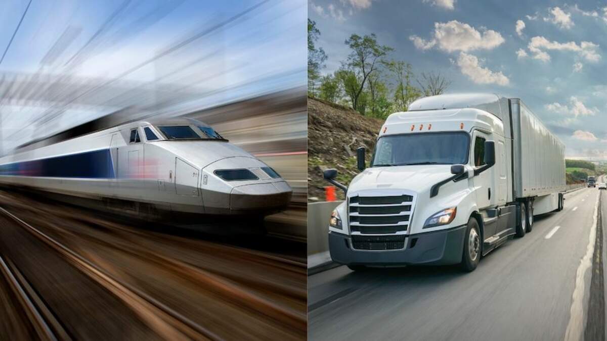 Shortly after, the train charges into the trailer as the truck attempts to get off the track, striking the wind turbine blade and causing the semi-truck's cab to roll onto its side.