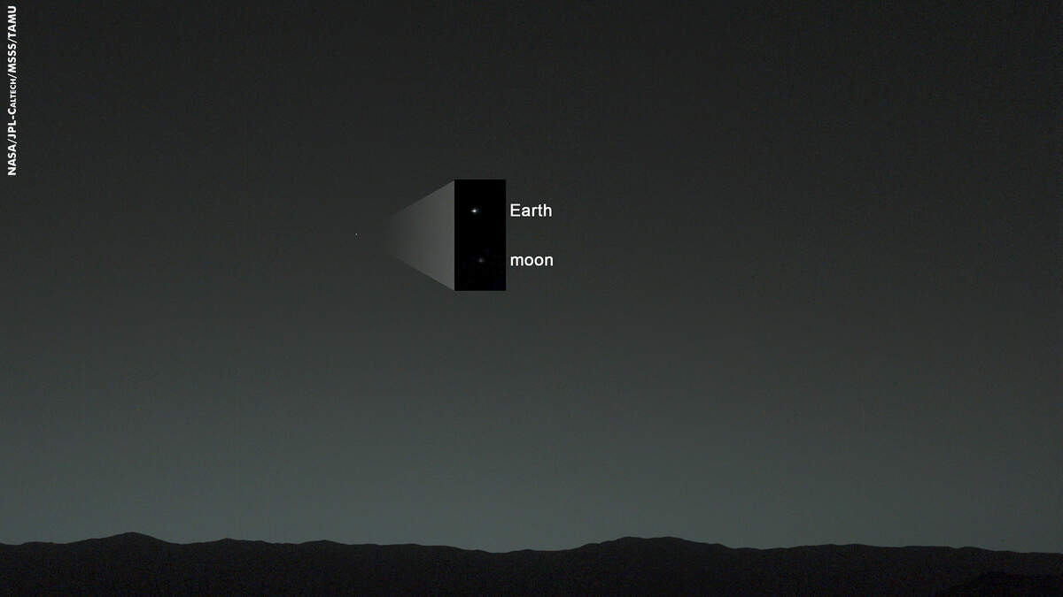 NASA's Curiosity rover captured a view of our planet from its location on the Red Planet. In the new image, the Earth can be seen as the brightest point of light in the Martian sky with our moon just below it. According to NASA, a human observer on Mars would easily see Earth and the moon as bright distinct lights. Check out the full resolution image at NASA.gov.