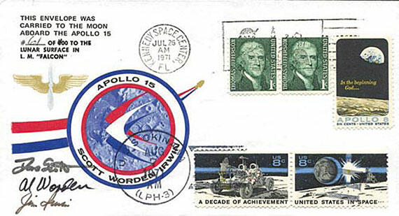 Al Worden Images The following images of commemorative postal cover from Apollo 15 accompany Al Worden's appearance on the 8/13/11 show.