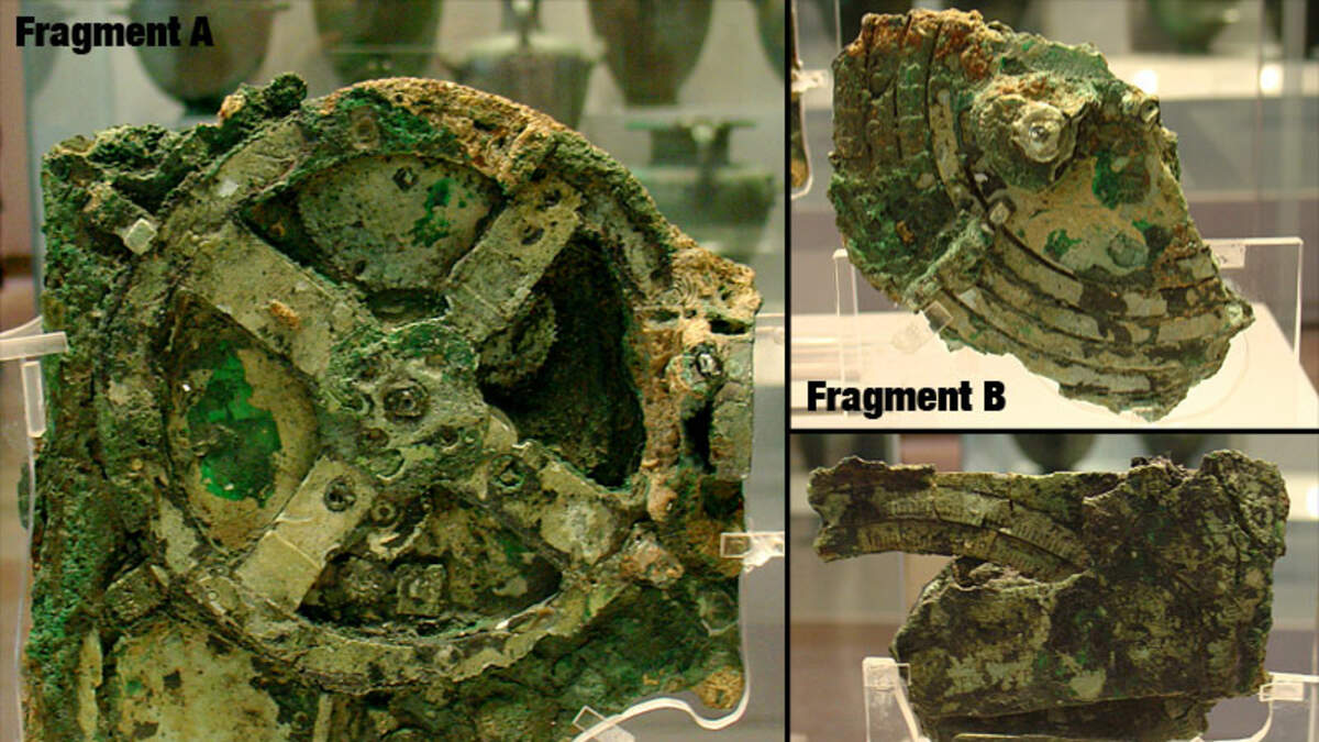 Pictured are fragments from a 2000-year-old artifact thought to be a kind of ancient computer. A working model of the device was recently unveiled in London. More at YouTube.