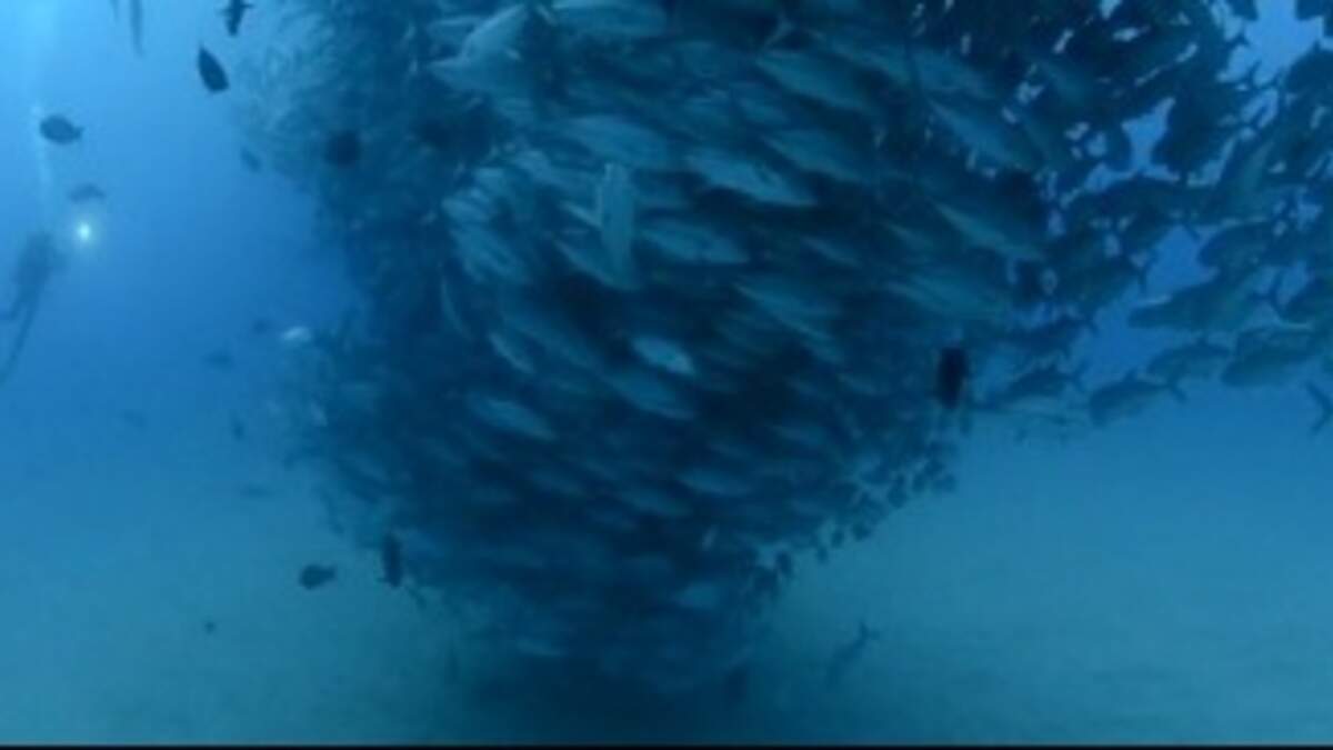 Marine biologist Octavio Aburto's three year quest to document the remarkable mating patterns of Jack fish has culminated in a breathtaking series of photos. Despite skeptics who disbelieve the veracity or plausibility of the images, Aburto insists they are genuine and capture a rare, albeit natural, ritual for the thousands of fish. For some perspective on the sheer size of the fish 'tornado,' note how Aburto's friend David Castro, seen on the left hand side of the photograph, is dwarfed by the phenomenon. More on the story, including video, at the Daily Mail.