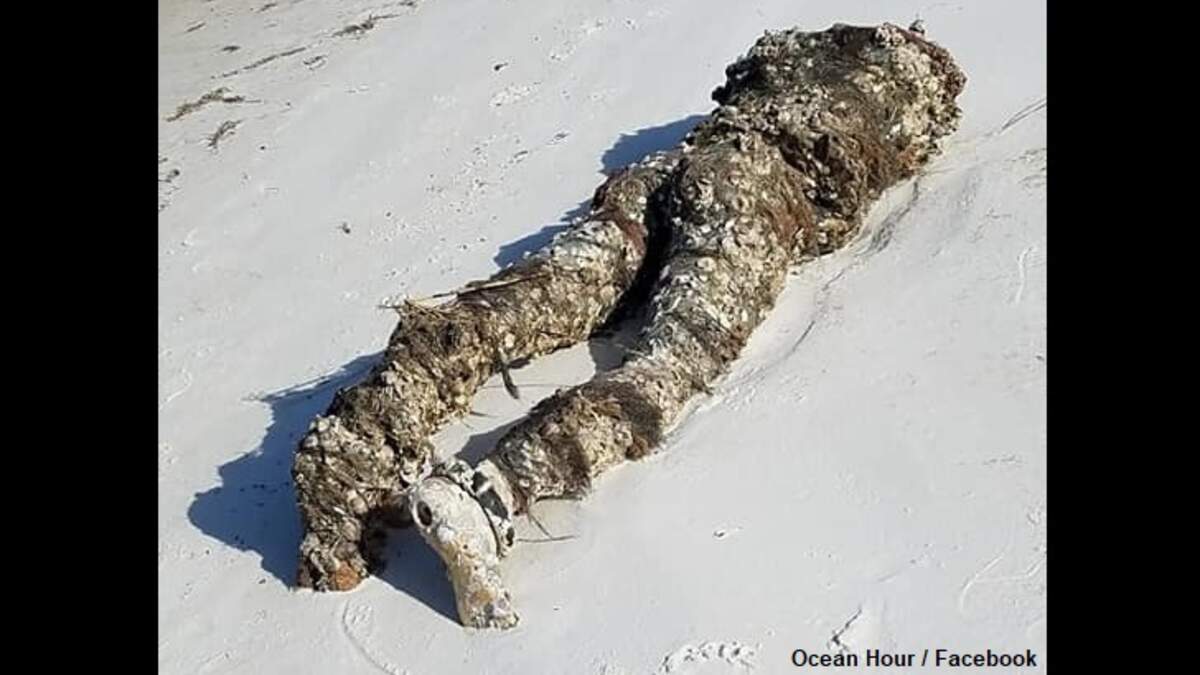 A volunteer with an organization that cleans up beaches in Florida stumbled upon what they thought was a decapitated human body, but their fear soon turned to laughter when the true nature of the 'corpse' was revealed. The strange incident reportedly occurred last week when a woman identified only as Kathleen from the group Ocean Hour was collecting trash that had been littered on the sands of Perdido Key near the city of Pensacola. However, much to her horror, she spotted an unsettling shape that bore an uncanny resemblance to a human body ... with no head!