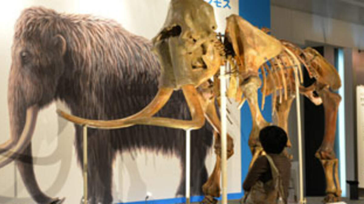Pictured: Specimen of a mammoth is displayed at an exhibition in Yokohama.
