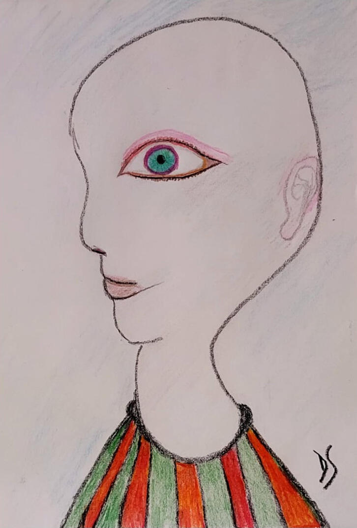 Sketch by Dolly Safran of "Momma," a tall gray who is one of her main ET contacts