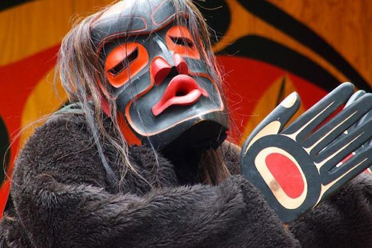 Meldrum stands next to a massive 3D printed skeleton of a proposed Sasquatch.