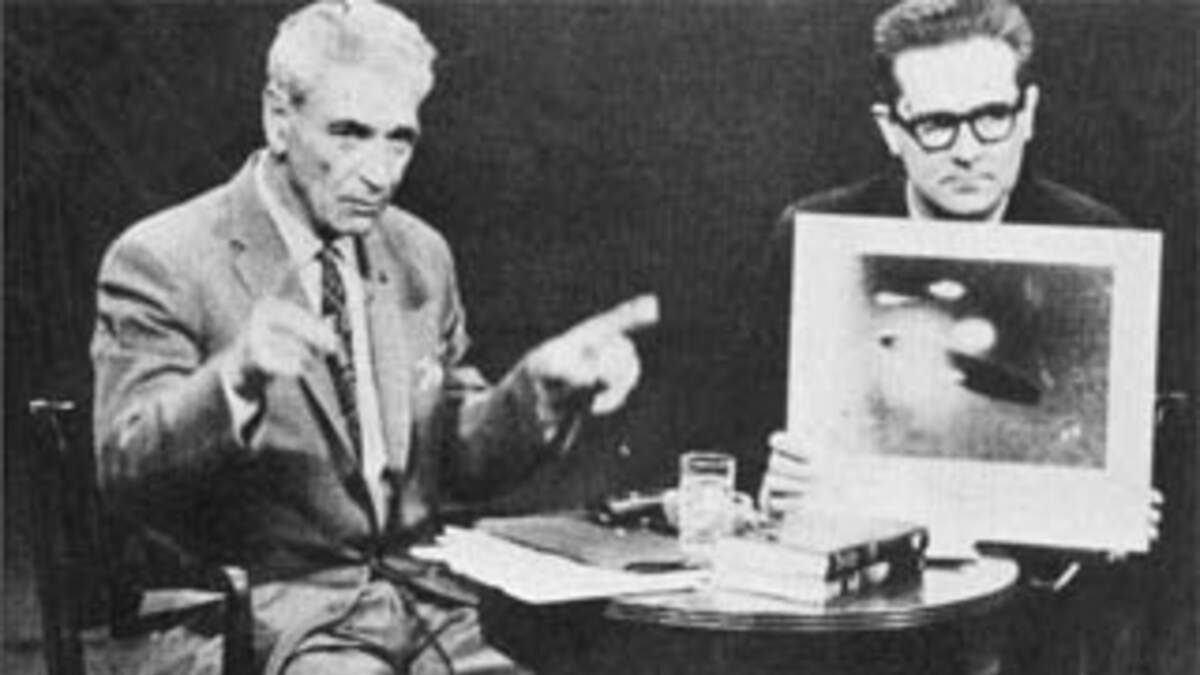 In George Noory's column (free PDF file) in the latest issue of UFO Magazine, he writes about how delighted he is that C2C is now carried on WOR in New York City. Back in the 1950s, WOR was home to radio host Long John Nebel, who pioneered the late-night paranormal talk radio format with guests such as George Adamski (pictured left, Nebel right).