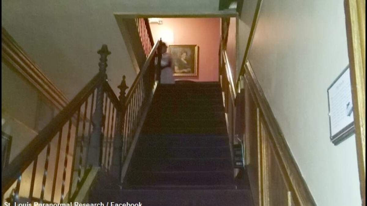 It is that spooky reputation which drew the St. Louis Paranormal Research Society to the home last week for one of many walking tours of the area that the organization offers to tourists and thrill seekers in search of ghosts. During this particular visit, one of the attendees on the excursion snapped a photo of a staircase inside the mansion and, in the image, a distinct figure can be seen standing on the second floor. According to a Facebook post by the group, the person who took the picture was certain that no one had been standing there at the time and the organization mused that perhaps the oddity was ghost known as the "lady in white," who has previously been seen in the mansion "over the years."