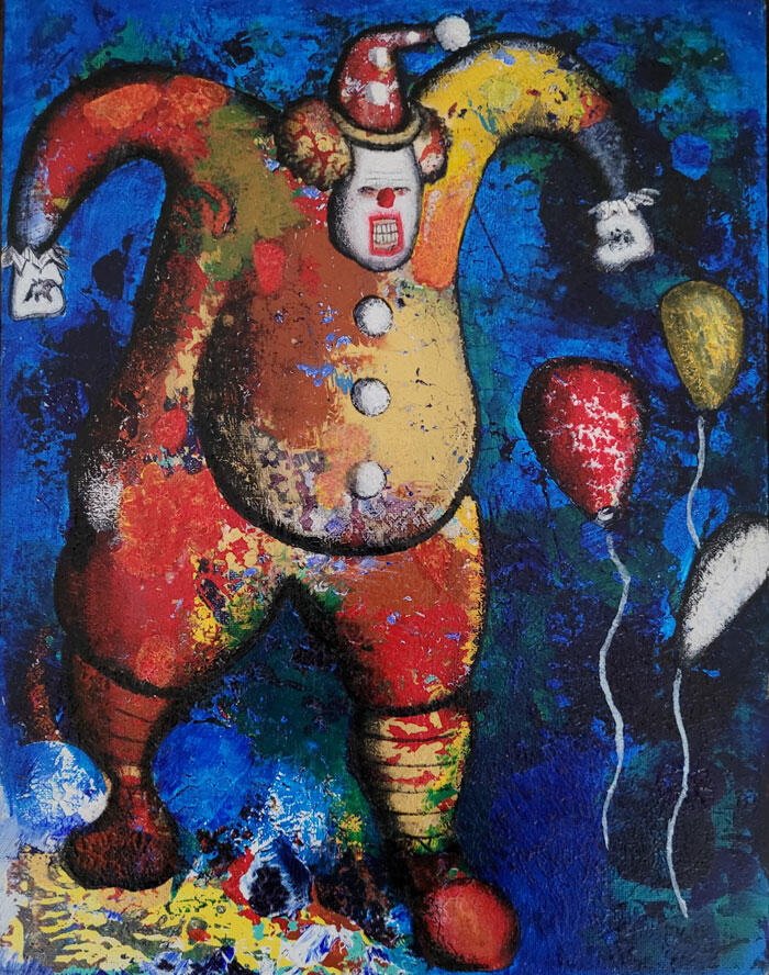 "Kitty won, or did she?" mixed medium, acrylic, and ink on canvas