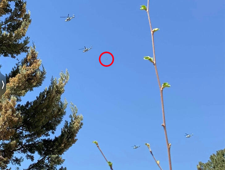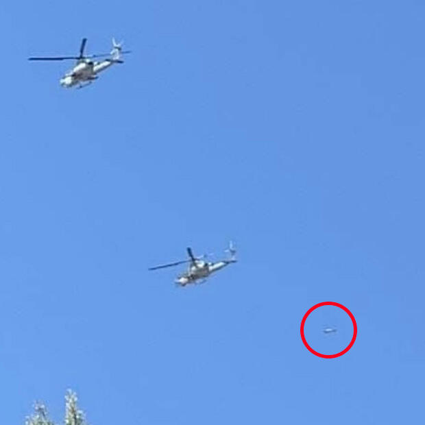 Photo 3: A wider shot of the Apache helicopters and UAP.