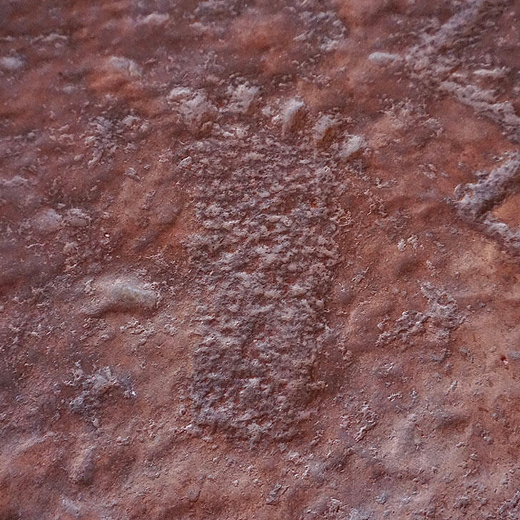 Photo 4: A petroglyph in a canyon north of Bradshaw Ranch, rumored to be an area frequented by Bigfoot. The ancient Anasazi who chiseled it into the rock had referenced smaller human tracks next to it, implying they had encountered something much bigger than themselves.