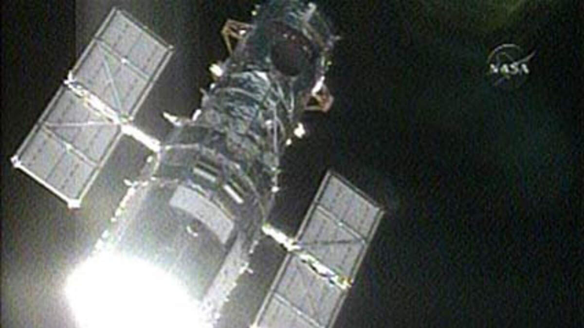 Astronauts aboard the shuttle Atlantis latched onto the Hubble today using a robotic arm. They are preparing for a series of spacewalks to repair and upgrade the telescope, which is pictured here as seen from the shuttle. Read further details/watch a live streamed broadcast of the mission.