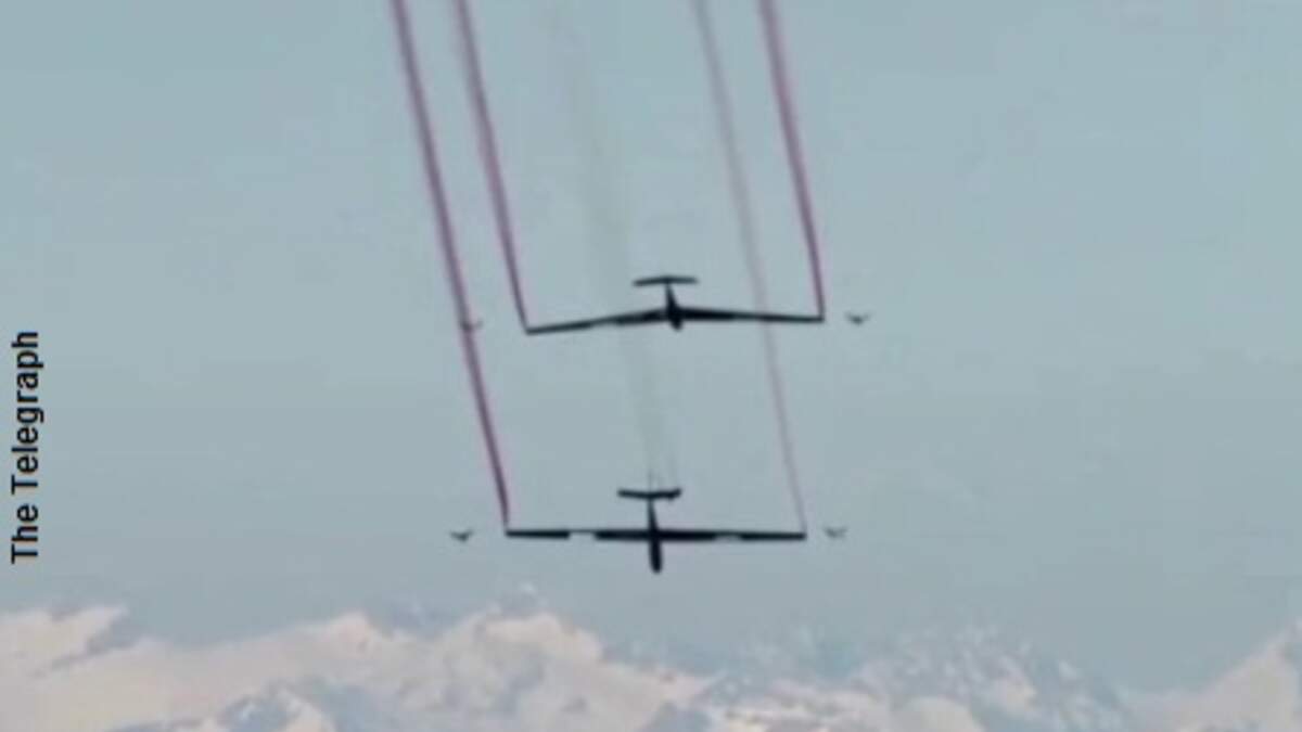 Those small objects flying alongside this pair of gliders may appear to be UFOs, but they are actually daring skydivers performing a breathtaking stunt. The thrill seekers are part of the Redbull skydive team and pulled off this remarkable performance 13,000 feet over the Austrian Alps. The skydivers managed to get so close the aircraft that they could see eye to eye with the pilots. More on the story, including video of the feat, at The Telegraph.