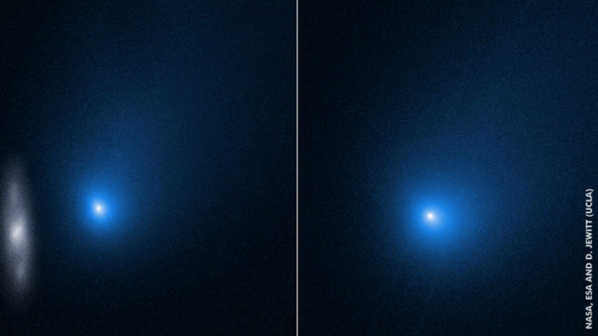 Two new images taken by NASA's Hubble Space Telescope capture an interstellar comet after its closest approach to the Sun and appearing near a distant spiral galaxy. Categorized as Comet 2I/Borisov, it is the first interstellar comet ever observed by humans. Amateur astronomer Gennady Borisov discovered the comet on August 30, 2019.