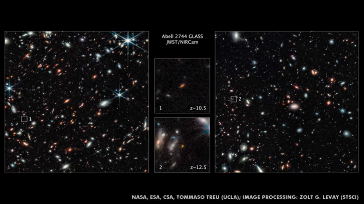 Since it was first calibrated and began capturing images the James Webb Space Telescope has exceeded expectations, and allowed astronomers to peer farther than humanity has ever been able to see into the universe. An international team of researchers, led by Rohan Naidu of the Harvard-Smithsonian Center for Astrophysics and the Massachusetts Institute of Technology in Cambridge, Massachusetts, and Marco Castellano of the National Institute for Astrophysics in Rome, Italy, have discovered two bright galaxies which they think were formed approximately 450 million and 350 million years after the Big Bang. "With Webb, we were amazed to find the most distant starlight that anyone had ever seen, just days after Webb released its first data," said Naidu. Researchers believe this observation will aid them in locating other early galaxies.