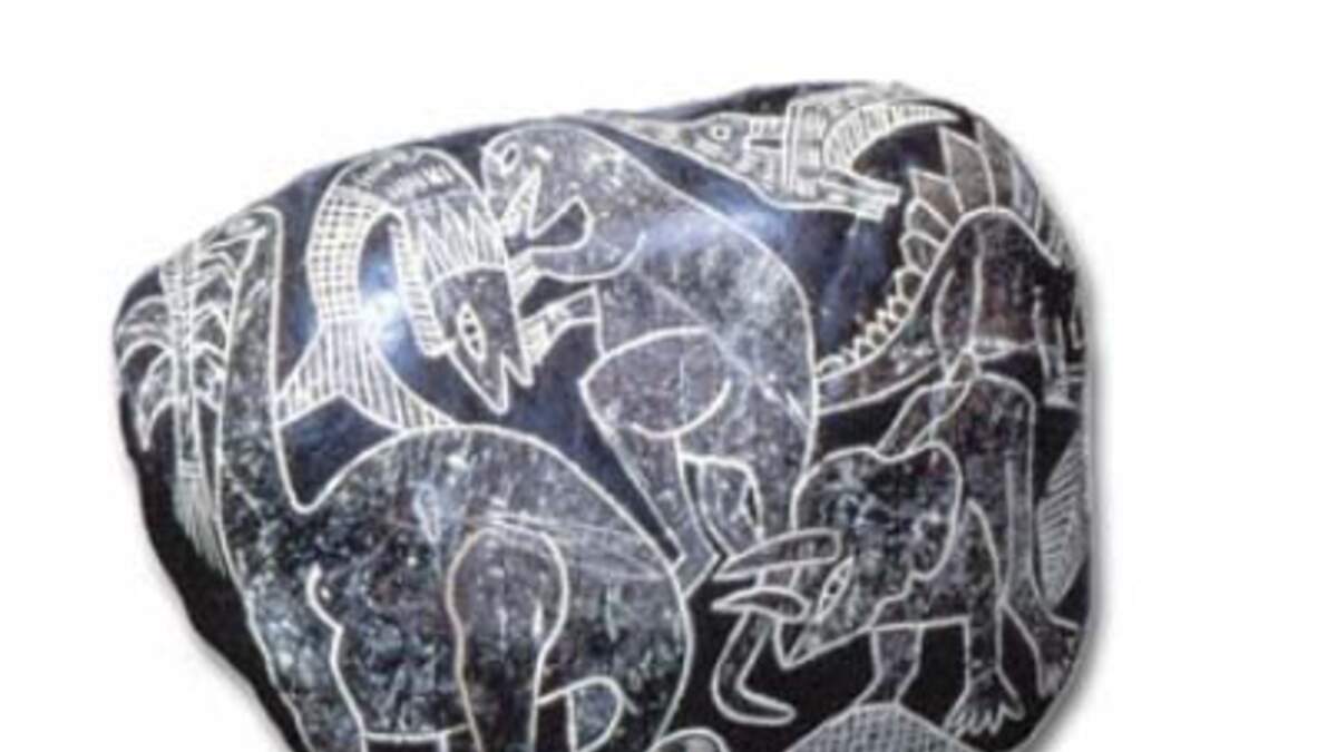 Jonathan Gray sent us several images to accompany his presentation. The first photo shows one of the ancient carved stones in Peru that depicted dinosaurs – "the farmer who discovered them was threatened with prison," Gray writes.