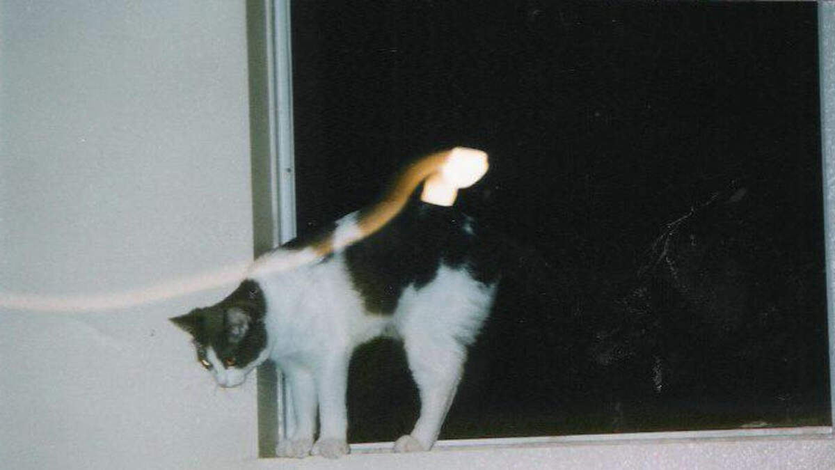 June DeYoung sent us photos showing anomalous activity with her cats. The grey and white kitty is "Bear" her polydactyl 7 toed cat, seen with a spirit. The late "Mr. Beene" is the orange kitty with a gold orb spiral running through it.