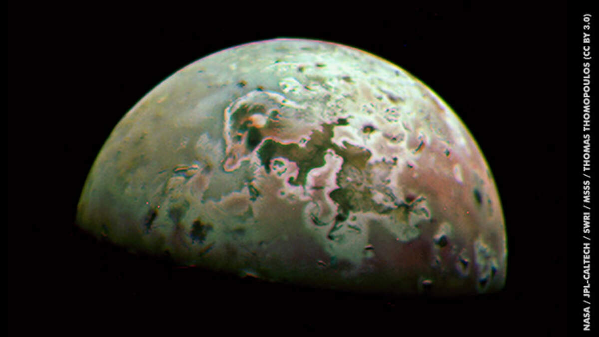 NASA's Juno spacecraft, which orbits the planet Jupiter, recently captured a series of stunning views of the gas giant's moon Io — the most volcanically active world in the solar system. The craft came within 13,700 miles of Io and snapped some of the most detailed images of the volcanic world ever using a powerful onboard camera called JunoCam. The images were taken on July 30, 2023, as Juno made its 53rd orbit around Jupiter, then refined by imaging experts and posted to the Juno mission website. Many of the darker areas in the image above are lava fields from Io's many erupting volcanoes.