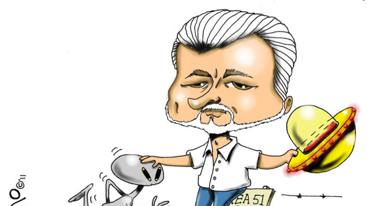 Caricature of George Knapp by Dennis Rano, ufologistoons.com