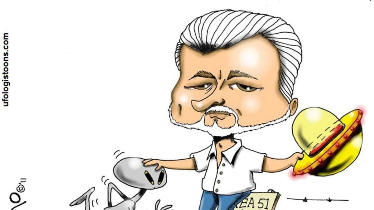 Caricature of George Knapp by Dennis Rano, ufologistoons.com