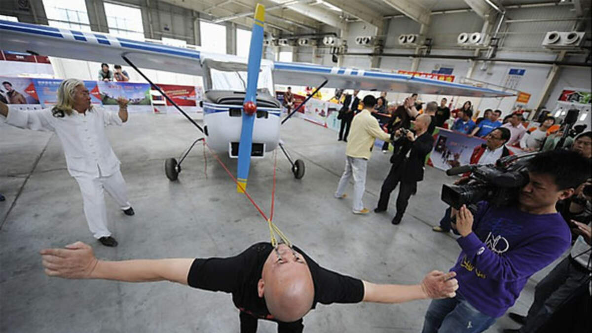 Chinese martial arts expert Dong Changsheng, 50, pulled a plane weighing over 1,000 pounds with a rope hooked only to his eyelids. Changsheng was able to move the aircraft 15 feet but thinks he could have pulled it much farther. More at Orange News.