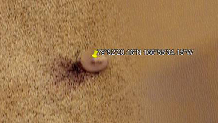 This circular object on the Mars surface casts a shadow and is more than 3.5 miles in diameter.