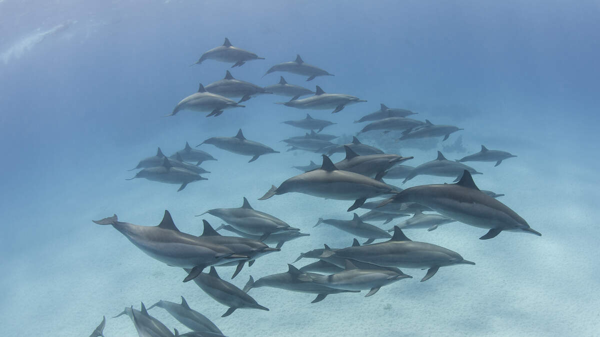 Rare footage captured one of the largest groups of spinner dolphins ever filmed, known as a megapod, hunting flying fish in the Pacific Ocean off Costa Rica as part of PBS's "Spy in the Ocean" nature miniseries. The team used a "spy dolphin" equipped with a camera and an animatronic bird drone to infiltrate and observe the dolphins. Known as the acrobats of the dolphin world, spinner dolphins can leap over 10 feet high out of the water and spin seven times in a single jump. The megapod communicated through clicks and whistles, and the gathering covered an extensive area both on the surface and underwater, consisting of thousands of dolphins at its peak. The use of spy cameras on animatronic animals provided a unique perspective on the dolphins' behavior without disrupting them with large, obtrusive cameras.