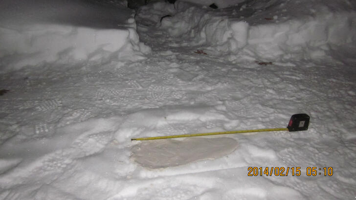 8) 16-inch print cast in snow, showing four inches of growth in eight years.