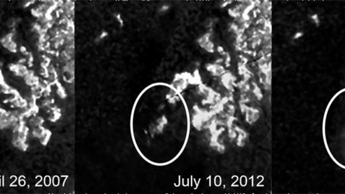 A mysterious structure on Saturn's moon Titan has been detected. An odd island-like feature off Ligeia Mare-- one of the moon's large hydrocarbon seas, appears to have doubled in size over the last year. More on the enigma at Space.com.