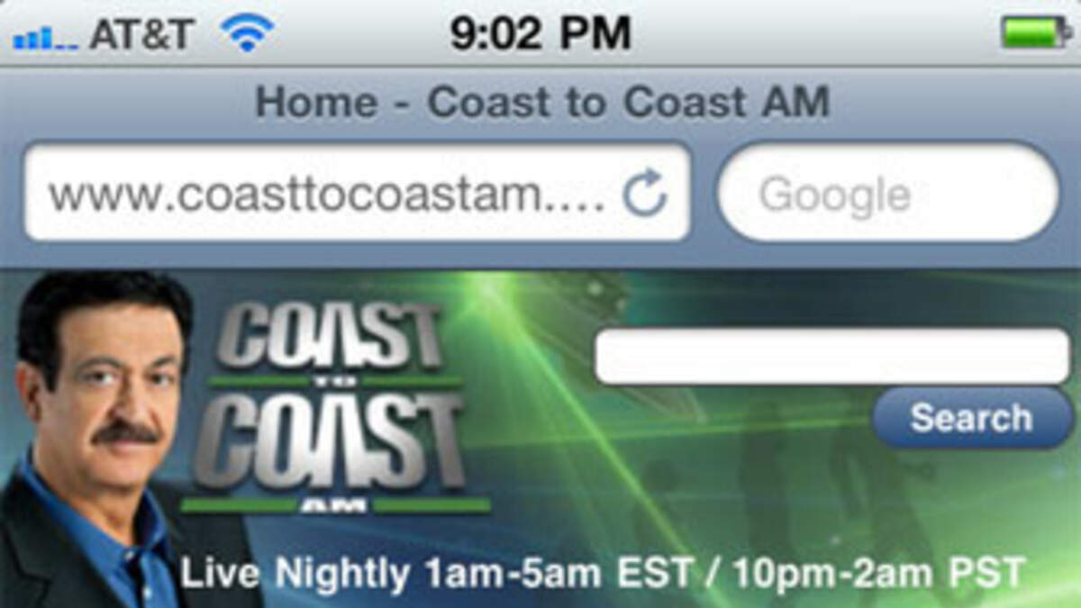 Coast to Coast AM is happy to announce that our website is now optimized for mobile device users, specifically for the iPhone and Android platforms. Now, you'll be able to connect to most of the offerings of the Coast website on your phone in a quick, and streamlined fashion. And if you're a Coast Insider, you'll have our great subscriber features right on your phone, including the ability to listen to live programs, and stream previous shows. No special app is necessary to enjoy our new mobile site-- simply visit coasttocoastam.com on your iPhone or Android browser.