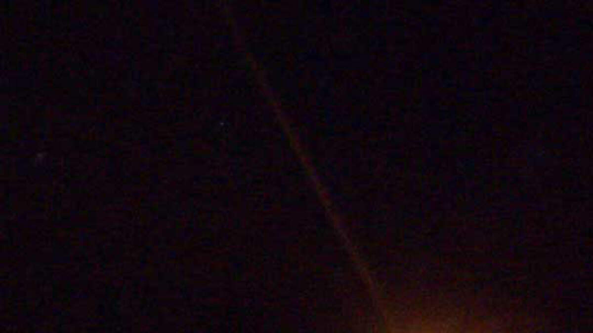 Linda Moulton Howe writes: [This is] one of many orange spheres seen moving in night sky between 9:30 PM to 10 PM between southern Kansas City and Raytown, a suburb straight east, on June 14, 2011. This image of an unidentified orange sphere near a tree limb and what appears to be a small white object moving downward from the sphere was taken in Raytown. Further west at the intersection of I-435 and Gregory Blvd, Kansas City Insurance agent Richard Vick counted 125 red-orange glowing spheres that emerged behind trees and rose into the air every two minutes over the half-hour across the road from where he stopped his car to watch.