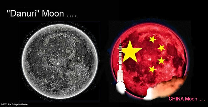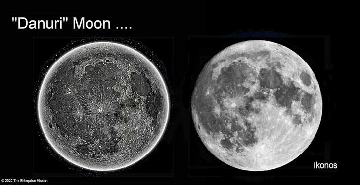 2) Comparison of South Korean "ring Moon" (left), and Earth satellite "Full Moon" view (right).