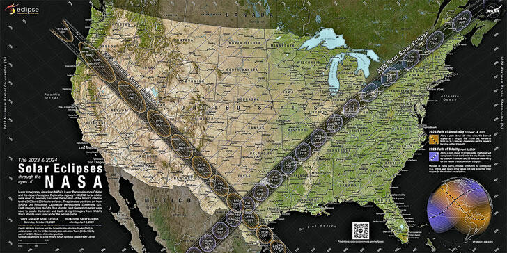 6) USA map of upcoming 2024 Total Solar Eclipse path -- where citizens, by taking smartphone pictures of the eclipsed sun in special filters, will be able to TEST the "ancient lunar dome hypothesis" for themselves.