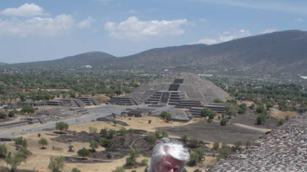 In the first photo, Richard C. Hoagland is pictured with Mexican journalist Jaime Maussan, measuring the HD/torsion physics high on the fourth level of "the Pyramid of the Sun" -- at Teotihuacan, Mexico. Photo by Robin Falkov.