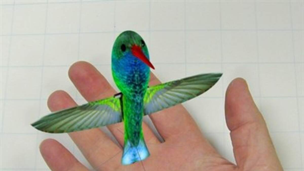 DARPA-contractor AeroVironment has developed a tiny drone that mimics the wing movement of a hummingbird, allowing it fly about and hover just like the actual bird. The firm says the final version of the winged "nano air vehicle" will look like a real hummingbird too, as well as be controllable from up to a kilometer away -- even inside buildings. See test flight video at Wired.com.