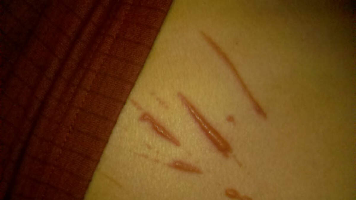 Just days ago, paranormal investigator Joshua P. Warren took this photo of a man's side that may have been scratched by the searing claws of an evil entity. These marks are actually painful, raised blisters. For more see, www.JoshuaPWarren.com