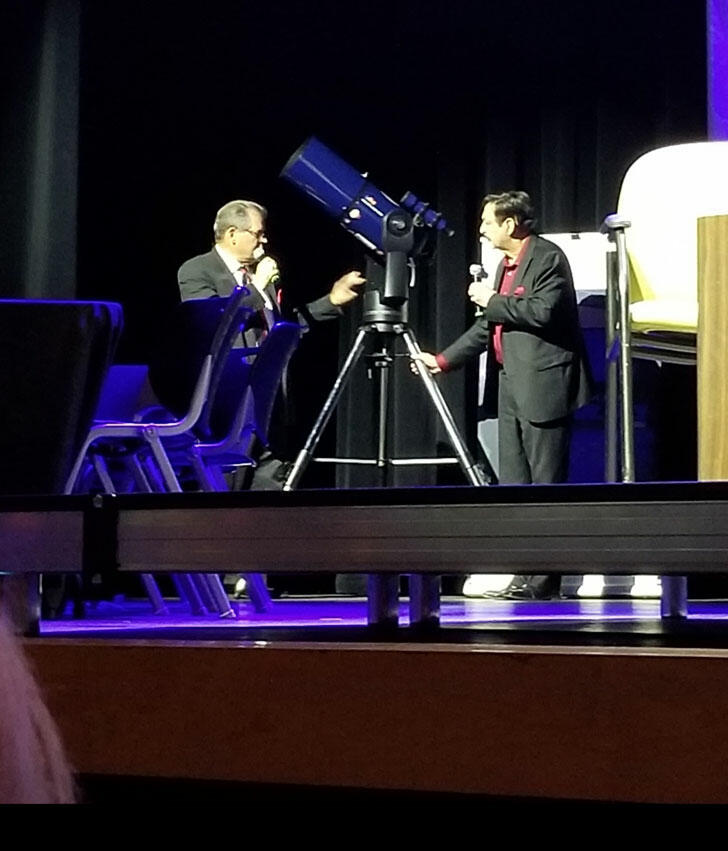 Astronomer Steve Kates "Dr. Sky" gives a demonstration of his telescope.