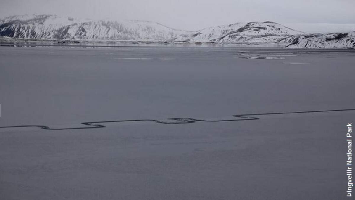 Residents living around Iceland's Lake Þingvallavatn were baffled this week when a strange pattern appeared on the ice-covered lake.