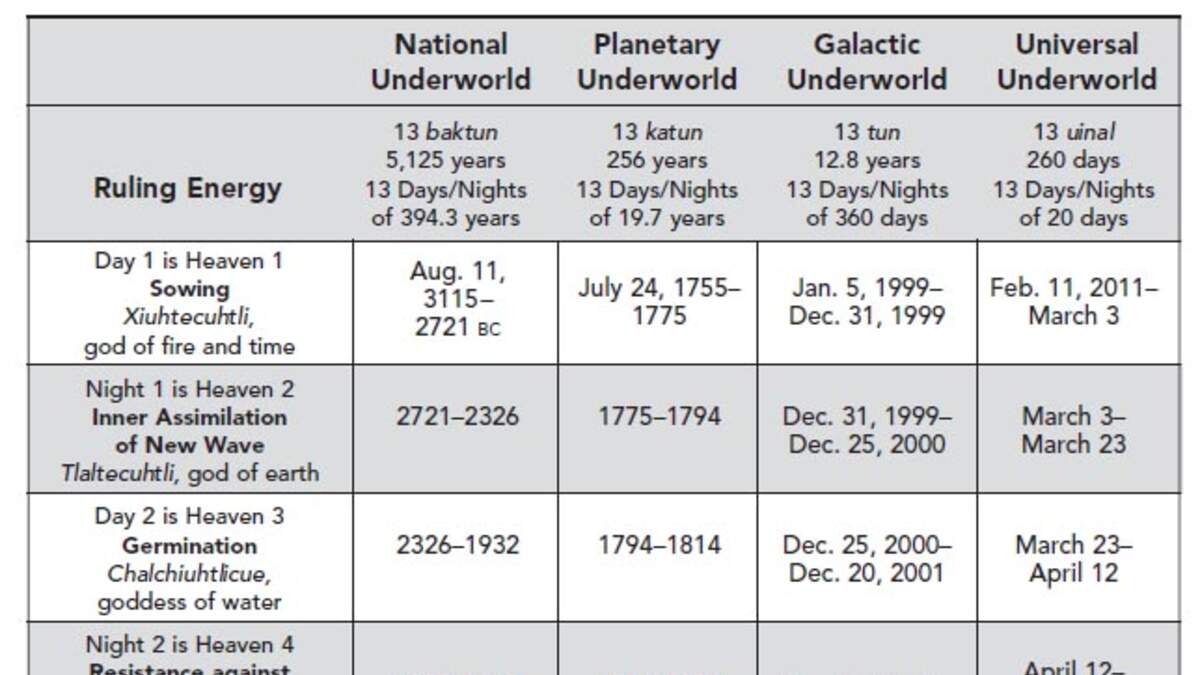 As part of her presentation, Barbara Hand Clow has provided us with the Calleman Matrix, a chart that illustrates various periods in the Mayan Calendar. Click on the image for a larger view.