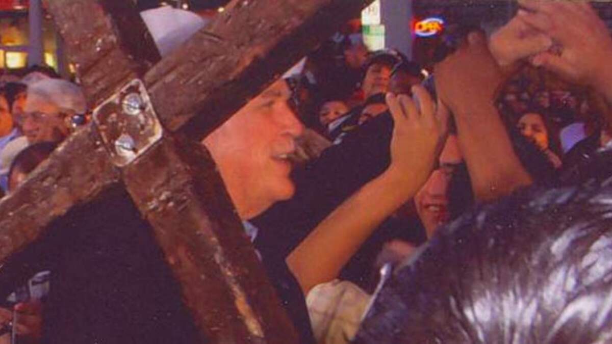 A photo from the premiere of the film The Cross, about Arthur Blessitt, who walked into 315 countries carrying a 12' wooden cross.