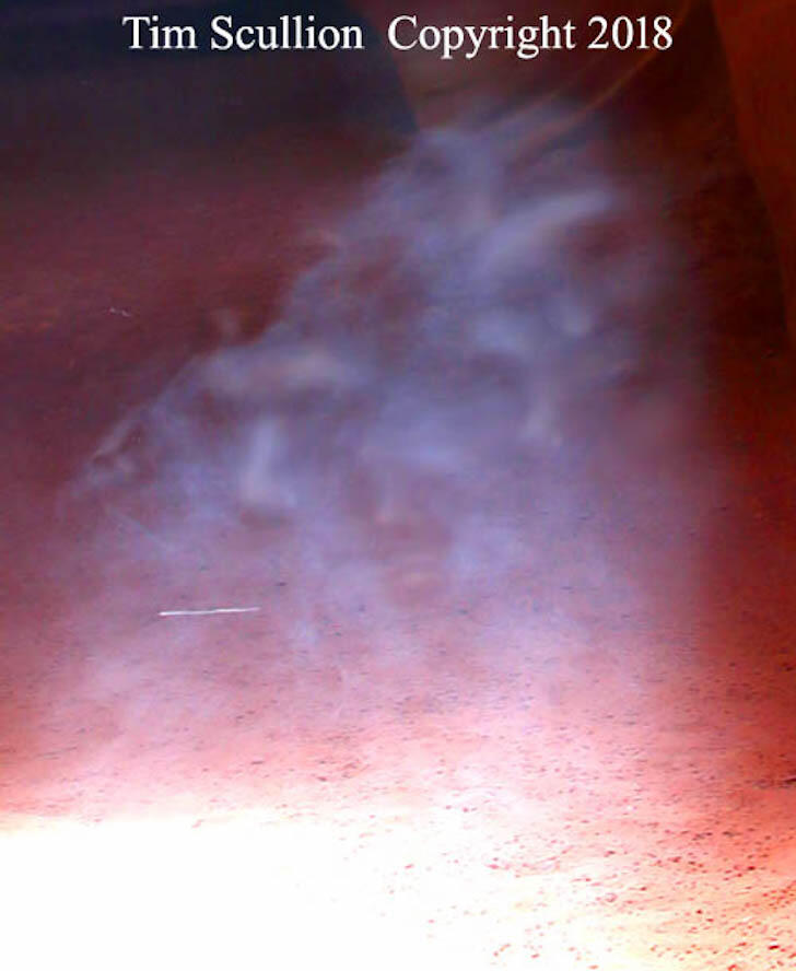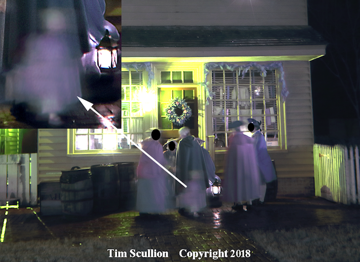 Tim Scullion shares some of his latest ghost photos for his appearance on the 5/10/20 show. In this first image, Colonial Williamsburg's "Lady in White" moves sideways across the photo.