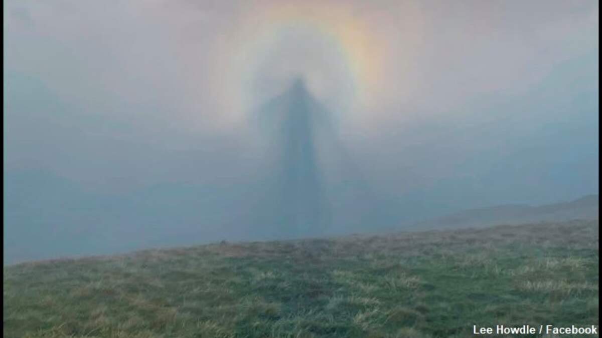 "My shadow looked huge. It was in this circular rainbow," he recalled, "it was like an angel in the sky over the hills." Howdle immediately recognized that he was witnessing a relatively rare meteorological phenomenon called 'Brocken Spectre.' This effect occurs when one stands at a high location with the sun behind them and clouds beneath them so that their shadow appears both significantly larger and with a colorful halo, known as a 'glory,' around it.
