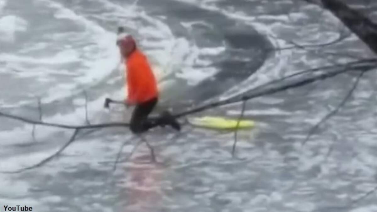 Alas, one of the out-of-towners who showed up at the site had plans that went beyond merely admiring the ice disk. On Thursday afternoon, a New Jersey man named Christopher Angulo was reportedly spotted venturing out onto the formation and began whacking it with an ax and cutting into it with a chainsaw. When asked why he was defacing the now-beloved ice disk, he explained that his plan was to carve a peace sign into the frozen circle which had stopped rotating earlier this week. Hoping that his work would somehow result in the disk spinning again, Angulo revealed that his ultimate goal was to "create that visual for people to see of peace making the world go around."
