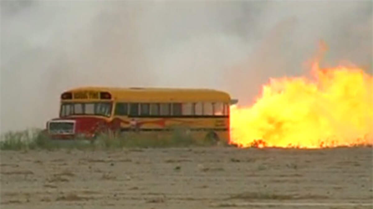 It may look similar to a traditional yellow school bus, but Paul Stender's custom built bus can reach speeds up to 367 mph. The vehicle, dubbed 'The School Time Jet-Powered School Bus', is fitted with a Phantom fighter jet engine, and uses 150 gallons of fuel during a single quarter mile run. Stender says he built the jet-powered bus to entertain people and inspire kids to stay off drugs. Video available from The Telegraph.