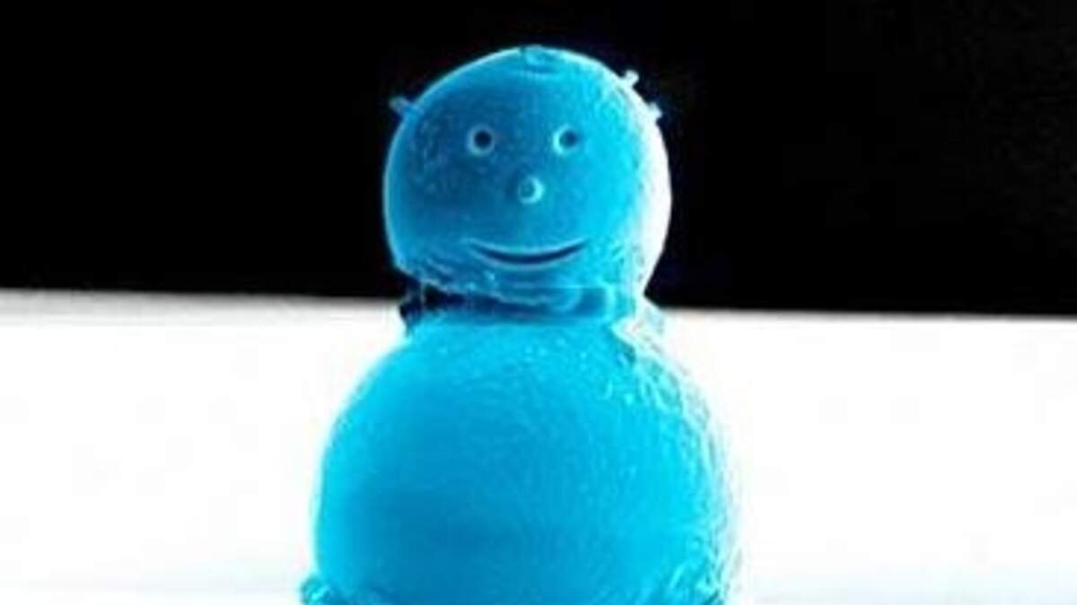 Perhaps tired of waiting for the first snowfall of the year, scientists in England have constructed the world's smallest 'snowman' using microscopic tin beads. The nano art measures a mere .01 mm across, sports a face carved by an ion beam and a nose made out of a minute speck of platinum. More on the story here.