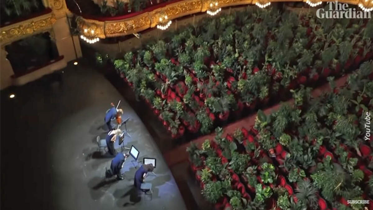 On Monday, the El Liceu opera house in Barcelona hosted a special concert for 2,292 house plants. The event, organized by Spanish conceptual artist Eugenio Ampudia, took place just as Spain lifted its three-month state of emergency. Reaffirming the value of art and music, the theatre kicked off its re-opening with this performance as a kind of roadmap for returning to normalcy.