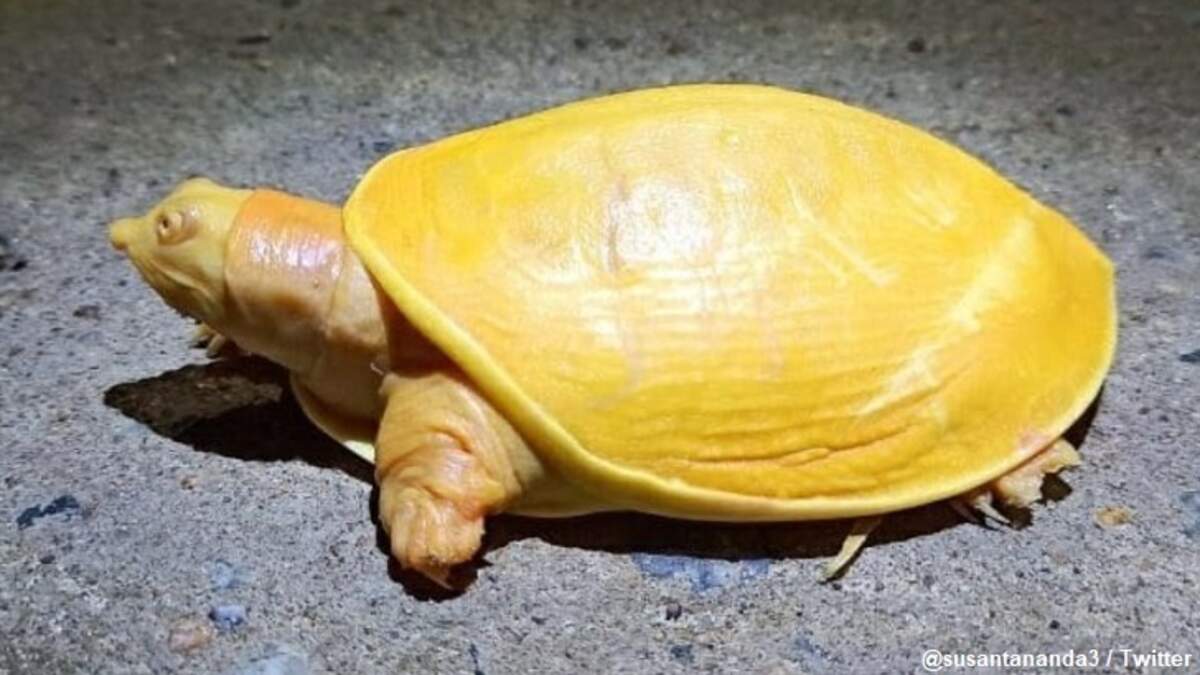 "The whole shell and body of the rescued turtle is yellow," marveled wildlife warden Bhanoomitra Acharya, "this is a rare turtle, I have never seen one like this." As for what may have caused its unique coloring, experts speculate that it is likely due to albinism. In sharing details about the creature on his Twitter feed, Indian Forest Services officer Susanta Nanda noted that the animal's eyes are pink, which is an indication of the condition.