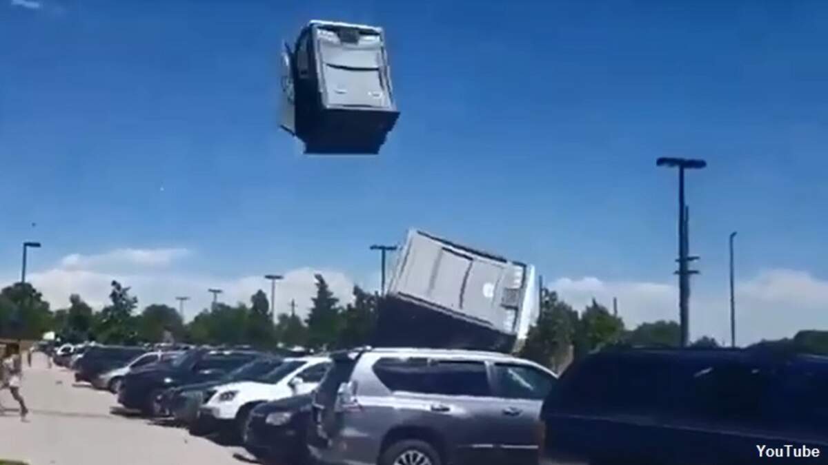 Picnickers had nowhere to run when a freak windstorm descended on a Colorado park, wreaking havoc on a nearby canopy tent and sending two Porta-Potties flying high into the air. The fierce winds pushed the portable toilets out of their enclosure, slamming them into parked cars before lifting off into the sky. No one appears to have been injured by the flying lavatories, though some may have been sprayed by their contents as they took flight.