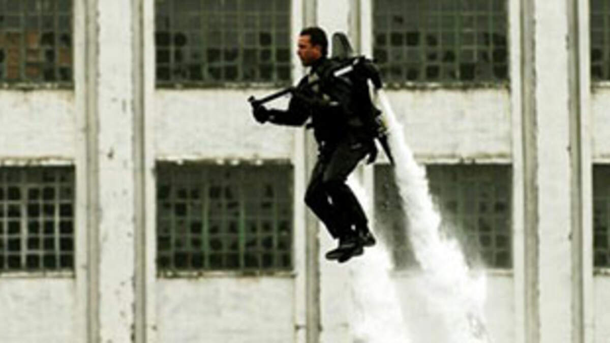 A futuristic water-powered jet pack was unveiled at the recent London International Boat Show. Using a powerful engine to pump water through two downward pointing tubes, the Jetley Flyer allows its operator to hover almost 100 feet in the air and travel at speeds up to 22 mph. More info, including video, at Mail Online.