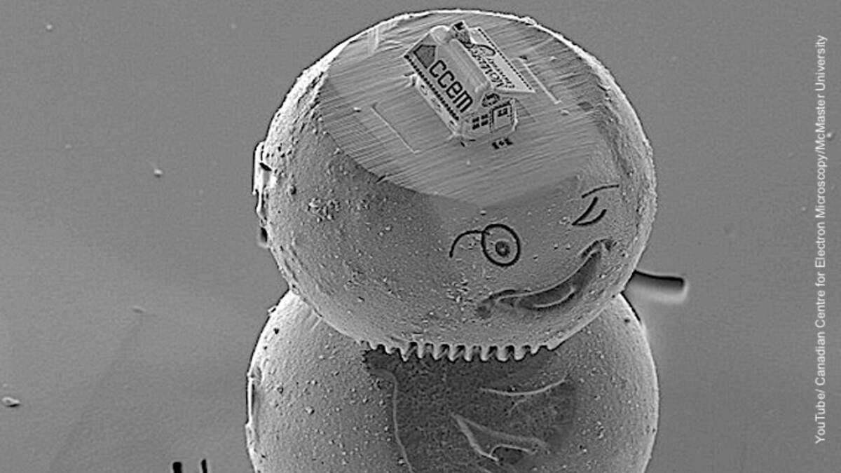 The Canadian Broadcasting Corporation (CBC) reported that Travis Casagrande, who works at the Canadian Centre for Electron Microscopy in Hamilton Ontario built the tiny house (complete with a brick chimney and a wreath over the door) using a device called an “ion blaster,” which uses charged ions of the element gallium, and works like a sandblaster to carve and etch the object onto a piece of silicon.