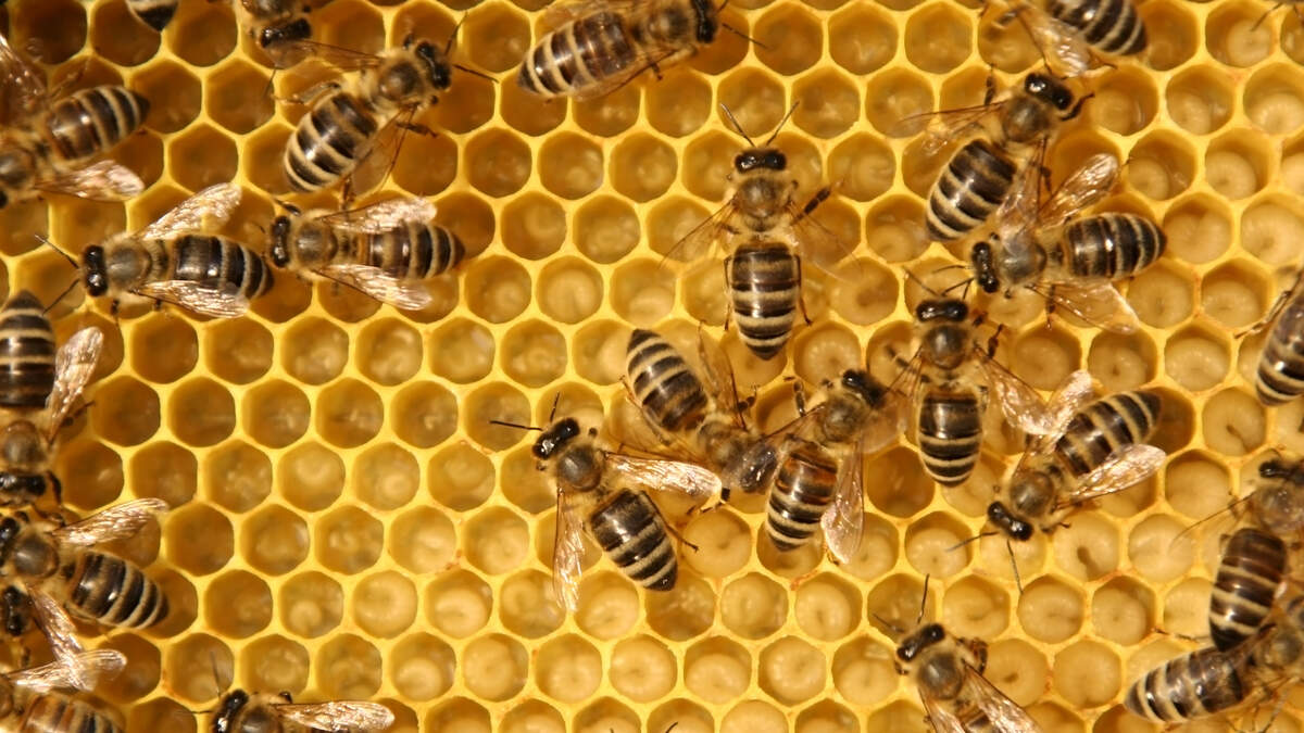 Hoagland pointed out that only "corporate hives" of large commercial beekeepers have been affected by Colony Collapse Disorder -- wild bees and bees from organic hives seem to be resistant to the disorder. Corporate hives, he continued, utilize foundation honeycombs upon which the bees construct their waxy hexagonal cells.